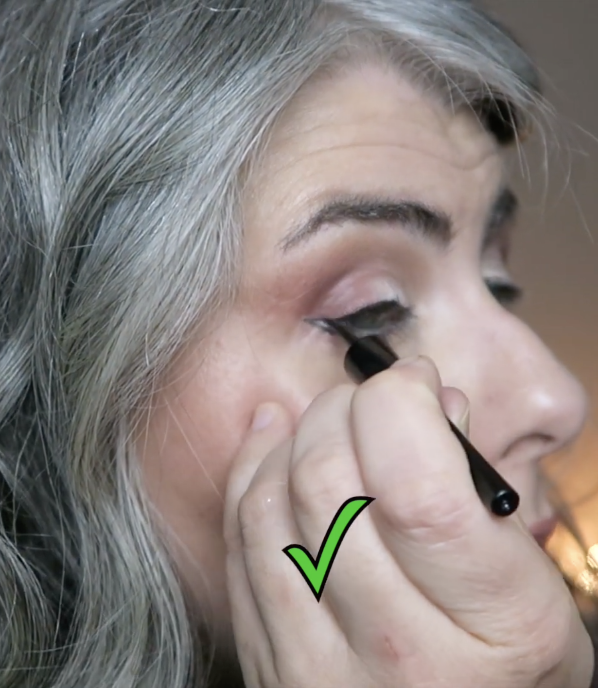 Iβm extending my eye by placing a thin line of concealer in a small wing shape. I then outline that with liquid black liner.