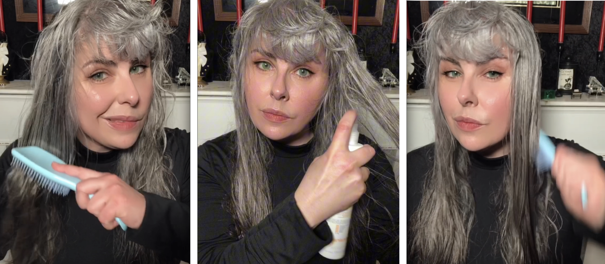 As I gently rake my tangle teezer on one side of my hair (the side without product), the is a significant drag in the tangles. I spray the other side and try the brush again - so smooth!